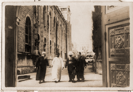 ภราดามาร์ติน เดอตูรส์ ภราดาฟ.ฮีแลร์ ภราดาไมเกิล ณ ลานด้านหน้าตึกเก่า ราวค.ศ. 1901-1914