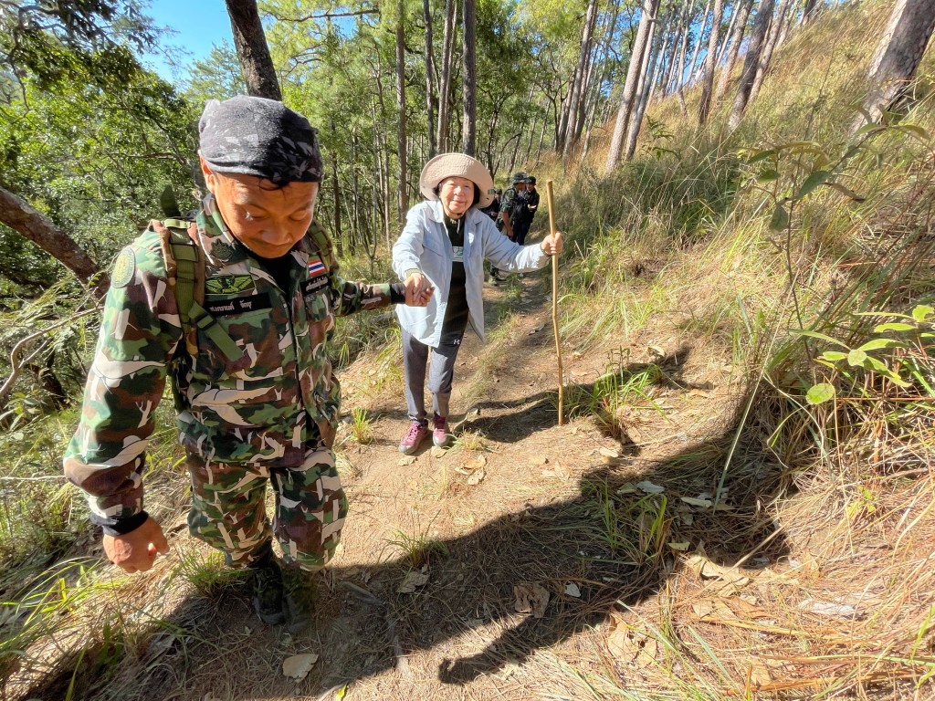 แต่บนความสูงในระดับพันกว่าเมตร กลางดงป่าสน ระหว่างทางสู่ยอดดอยหลวงเชียงดาว อาจารย์รตยา จันทรเทียรในวัย 91 บอกกับผู้เขียนและคณะที่ร่วมเดินทางมาให้กำลังใจ