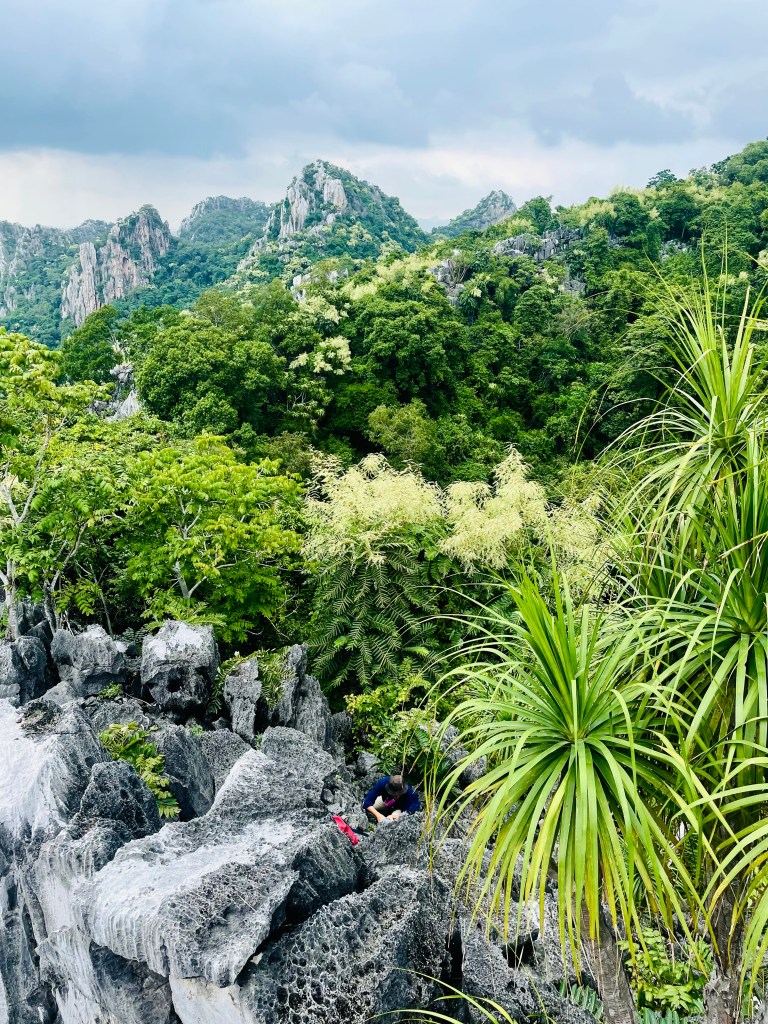 ยิ่งเดินสูงขึ้นไป ยิ่งต้องใช้ความระมัดระวังมากขึ้น นอกจากความลื่น ความชันแล้ว ความคมของหินปูน ทำให้ต้องมีสติในการปีนป่ายไปทุกฝีก้าว แต่ก็คุ้มค่ากับสิ่งที่รอคอย เมื่อเดินถึงยอดเขาหินปูน ต้นปรงยักษ์ Cycad พืชดึกดำบรรพ์อายุรุ่นเดียวกับไดโนเสาร์ เมื่อหลายร้อยล้านปีก่อน ปรากฎอยู่เบื้องหน้า