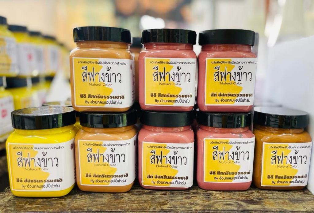 ล่าสุดพวกเขาได้ลองพัฒนาฟางข้าว ที่ถูกทิ้งไว้มากมายตามหัวไร่ปลายนาหลังการเก็บเกี่ยว ให้เกิดประโยชน์สูงสุดให้กลายเป็นสีธรรมชาติ