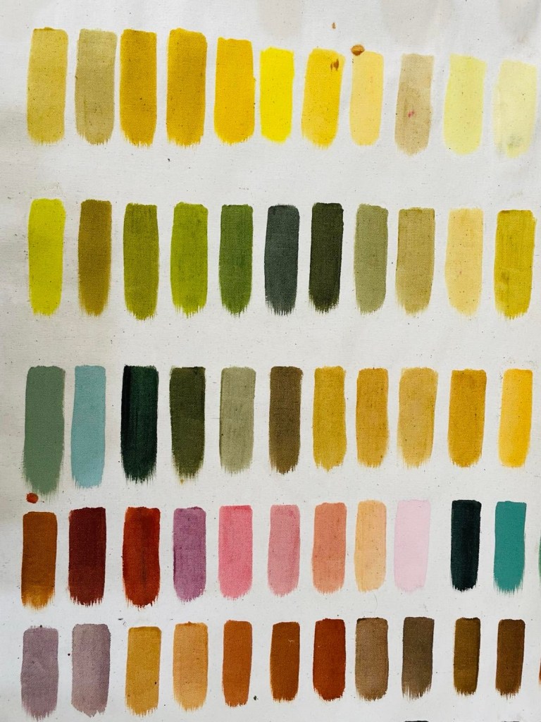 อาทิ สีน้ำตาล สีเทา สีน้ำตาลเข้ม สกัดมาจากดินชนิดต่าง ๆ ที่มีสีไม่เหมือนกัน