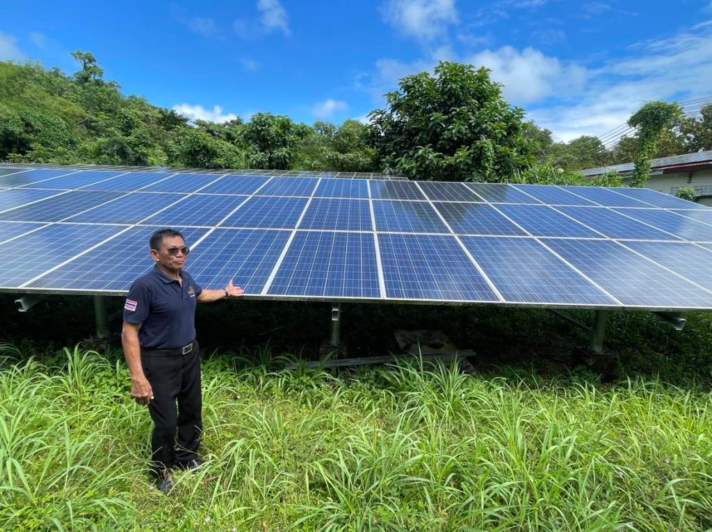 “พวกเราเริ่มใช้พลังงานแสงอาทิตย์มาตั้งแต่ พ.ศ. 2547 ตอนนั้นเริ่มต้นด้วยระบบโซลาร์เซลล์กำลังผลิต 7.5 กิโลวัตต์ ใช้สูบน้ำจากบ่อน้ำตื้น 3 แห่ง เพื่อใช้กับระบบประปาหมู่บ้าน และเครื่องยนต์ดีเซล 50 กิโลวัตต์ เราใช้ 2 ระบบนี้ผสมผสานกันในการผลิตพลังงานให้กับชุมชน ต่อมาก็เพิ่มระบบโซลาร์เซลล์ขึ้นเรื่อย ๆ ถึง 40 กิโลวัตต์” ผู้ใหญ่บ้านแกนนำบอกกับผู้เขียน ขณะพาไปดูแผงโซลาร์เซลล์จำนวนมาก ทั้งบนหลังคาและพื้นดิน รวมถึงห้องแบตเตอรี่หลายห้องที่คอยเก็บพลังงานแสงอาทิตย์